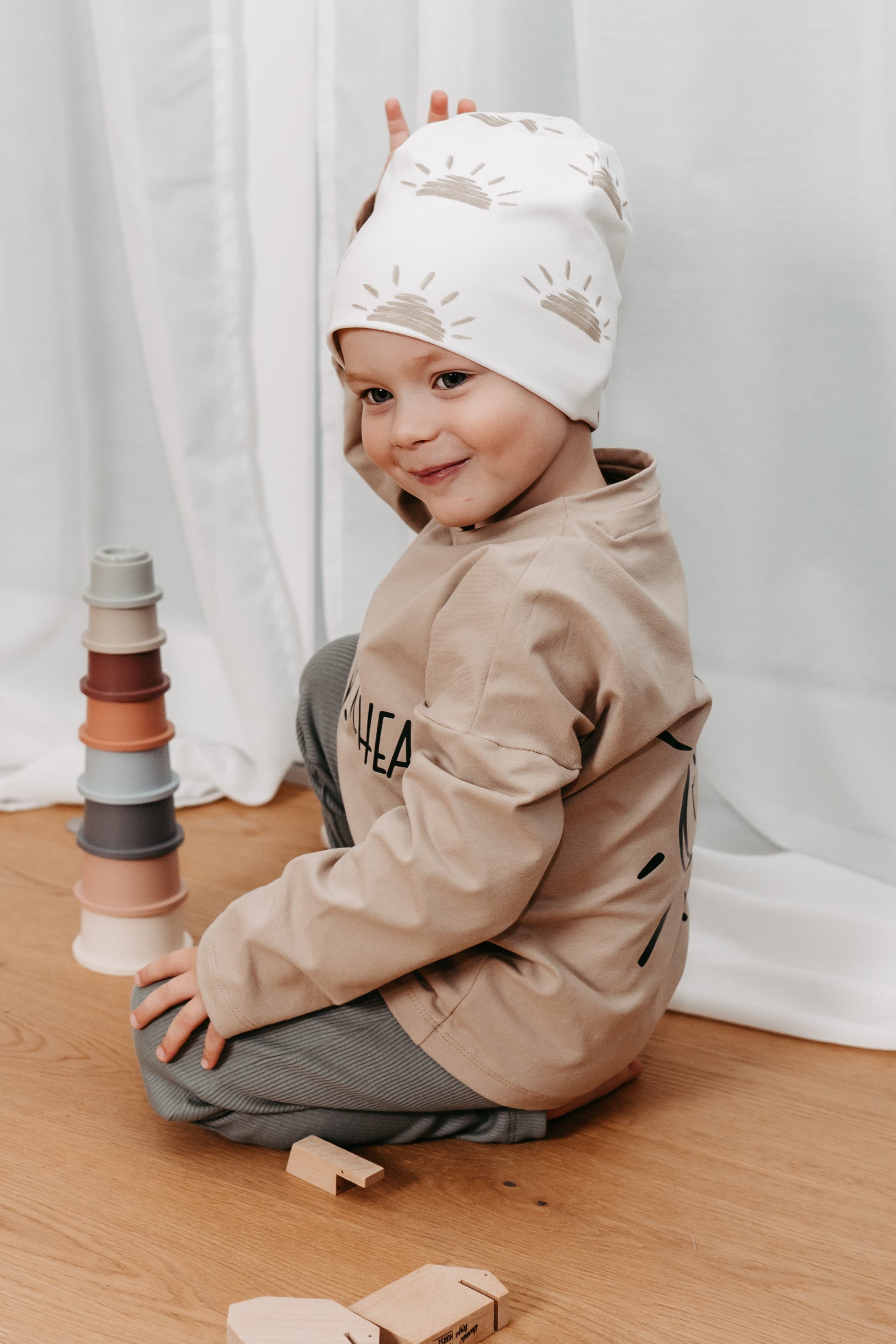 Alle unsere Outfits lassen sich einfach untereinander kombinieren. Durch die gemütlichen Oversized Schnitte bereiten Kleidungsstücke von wesakakids besonders lange Freude.