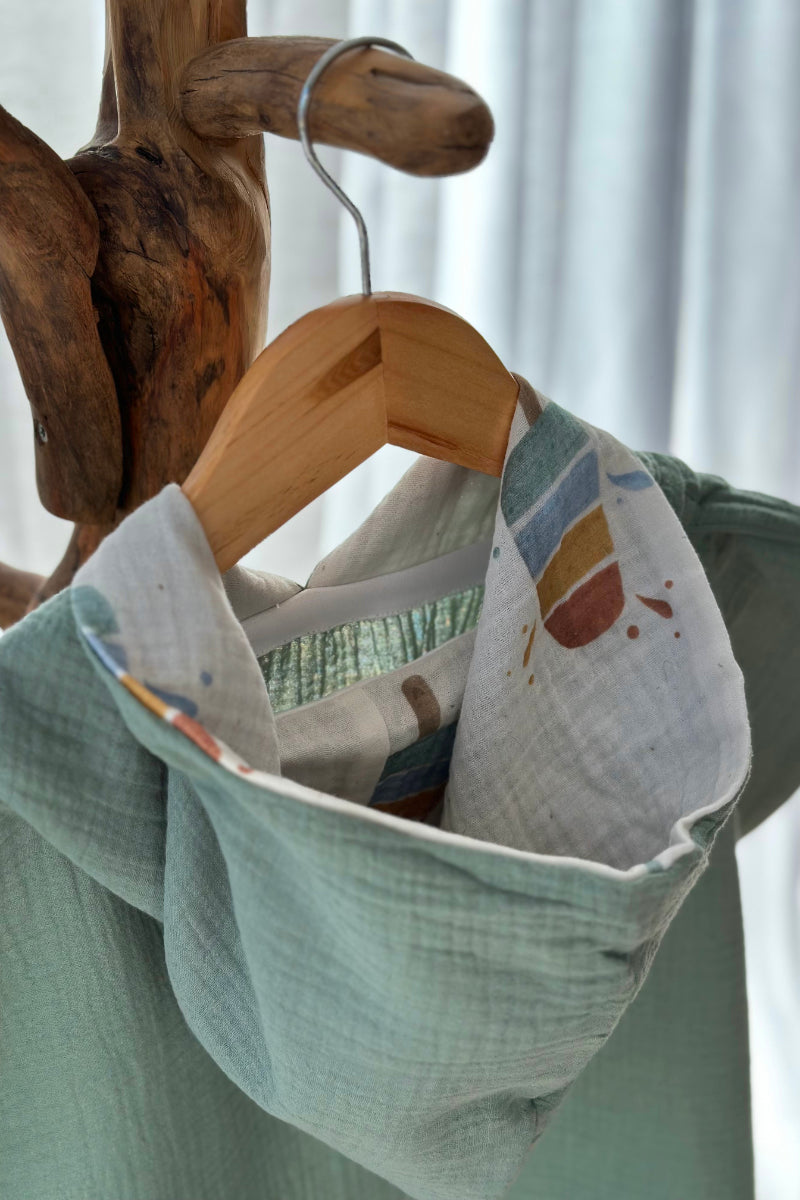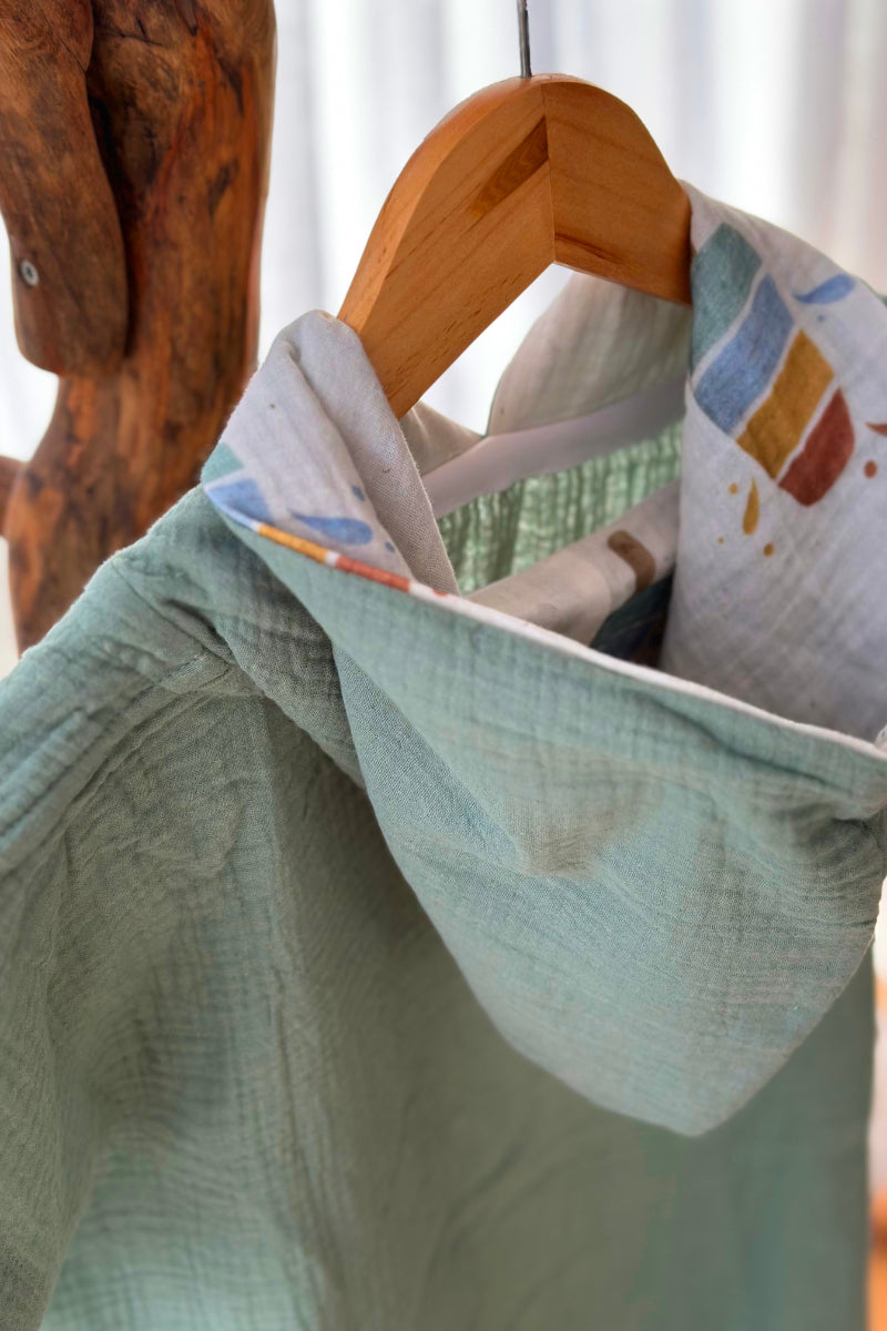 Badeponcho in Einheitsgröße aus kuschelig weichem GOTS zertifiziertem Bio Baumwoll-Musselin mit gefütterter Kapuze in exklusivem Design